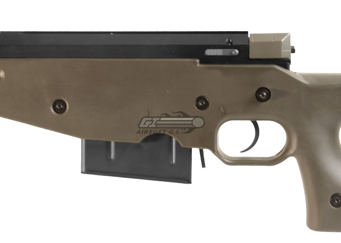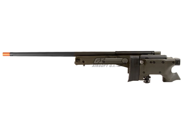 There have been many great airsoft replicas of bolt action rifles in the past few years, but the ARES AW338 is by far one of the best that we have seen to date. Out of the box it comes with all the necessary equipment to dominate on the field. Included with the gun, you will receive an excellent scope mount and adjustable bipod that not only all look great on the gun, but are sure to provide a tactical advantage as well. On the rear of the stock there is an adjustable mono-pod that gives the user improved target acquisition and a stable shooting platform when used in conjunction with the bi-pod, and unlike other replicas like the L96, the AW338 has a side folding stock with a adjustable cheek rest. What really sets this sniper rifle apart from most other airsoft sniper rifles is that the magazine is actually located in the correct location. This adds a great extra element of realism to the look and feel of the ARES AW338. This gun is solidly constructed with a nylon fiber body and a CNC aluminum alloy barrel, and is spring powered, so you will never have to worry about running out of gas mid game.