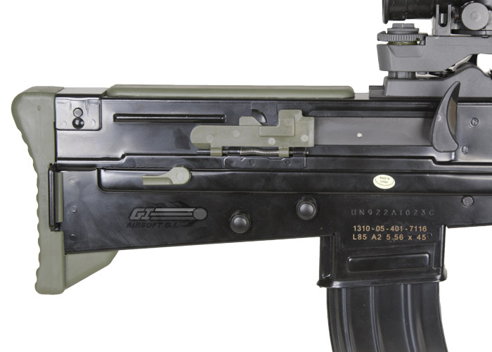 The ARES Full Metal L85A2 AFV is a new breed of CQB airsoft gun. It keeps the same basic characteristics of the L85, like the bullpup design, and the top rail. However the little things that have been changed make a world of difference. The barrel has been extremely shortened and the hand guard done away with. A small rail section and metal shroud replaced the hand guard, and Ares has graciously included a vertical grip to match the rail. Additionally, a replica 4x Susat scope is included from the factory and is fixed to the top rail. A smaller magazine is included to suit the AFV's smaller size and a little weight has been added for more realism. This is a great replication of the famous British military support and long range weapon; it features a full metal body and gearbox. Nobody can replicate airsoft guns quite like Ares can.