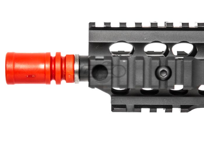The ARES Full Metal M4E URX Airsoft Gun retains all of the great features from it's predecessor but also comes with a few great new features. The exterior is exquisite, the full metal construction is very realistic. The one piece barrel is constructed of metal. The metal body looks amazing, especially with Ares' helmet and spear logo on the side of the magazine well. Most of the improvements on this gun have been made to the interior. An electronic fire control unit has been added to increase trigger response and durability. One major key feature with the ECU is a programmable system that will allow the user to program their fire controls to burst mode. The piston has been reinforced for more durability. The piston head is now made of polycarbonate and ported for an air tight seal. Perhaps the most noticeable change is the hop up, it is no longer attached to the gearbox. Ares have opted for a more traditional one piece design. The back of the gearbox features Ares' quick change spring guide, which makes it extremely easy to change the FPS on the gun based on what field you happen to be playing at that day. This is a properly engineered gun, inside and out, anyone considering buying a full metal M4 would be delusional not to consider the Ares into their pool of possibilities. The M4E URX 3.1 13.5" carbine is an amazing rifle that performs exceptionally well in medium range engagements.Specifications: