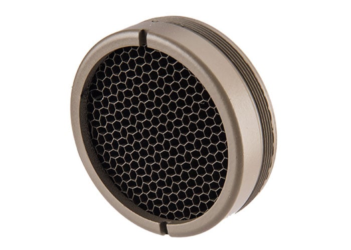 The Atlas Custom Works Killflash for Airsoft M2 Scope is a metal honeycomb and polymer lens cover that reduces or eliminates the sun glint or reflection from the front lens of an optic. The metal honeycomb will also assist in preventing the glass from being shattered by most BB impacts. This killflash is made to fit the design of a Airsoft M2 Scope, and is made to thread into the front of the optic housing.