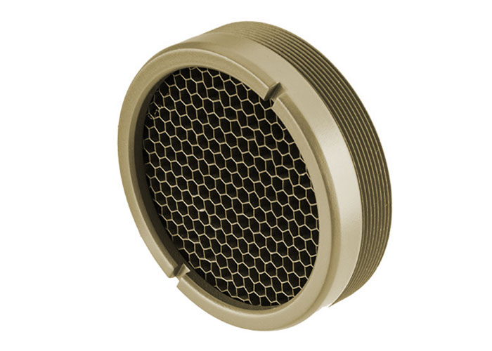 The Atlas Custom Works Killflash for Eotech Style 4x FXD Magnifier is a metal honeycomb and polymer lens cover that reduces or eliminates the sun glint or reflection from the front lens of an optic. The metal honeycomb will also assist in preventing the glass from being shattered by most BB impacts. This killflash is made to fit the design of a EOTech FTS Magnifier, and is made to thread into the front of the optic housing.