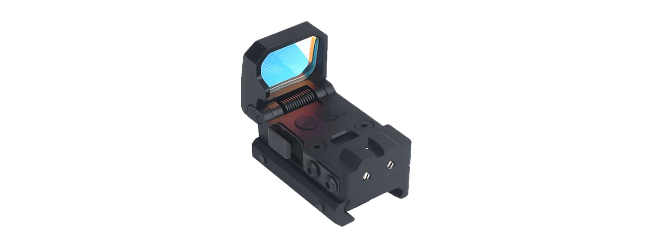 Designed with precision and practicality in mind, this reflex sight boasts a lightweight yet robust aluminum construction. The standout feature of this sight is its ability to assist shooters in acquiring targets more swiftly and effortlessly. By offering a clearer and broader field of view, it significantly enhances your shooting accuracy and speed, making it a valuable addition to your firearm. The lens of the Flip Dot Reflex Sight has a unique capability: it can be folded down, similar to a flip-up rear sight. This feature not only provides protection for the lens when not in use but also allows for quick and convenient transition between aiming with the sight and without it.