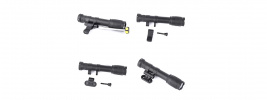 Introducing the Atlas Custom Works M640U Scout Light PRO Rail Mount LED Flashlight, a high-performance illumination solution designed for tactical applications. Crafted from durable aluminum in a sleek black color, this flashlight boasts a powerful output of 470 lumens, making it an ideal choice for various low-light scenarios. Powered by 2 CR123A batteries (not included), the M640U features a robust LED module capable of withstanding recoil force, ensuring reliability in demanding situations. The screw mount for 20mm rail and special mount base for M-Lok/KEYMOD rail provide versatile and secure attachment options. The flashlight comes complete with a momentary pressure pad switch cap and an on/off push-button switch cap, offering flexibility in operation. With its durable construction and anodized finish, the Atlas Custom Works M640U Scout Light PRO is a reliable and efficient lighting solution for those seeking high-performance illumination in a compact and rugged design.