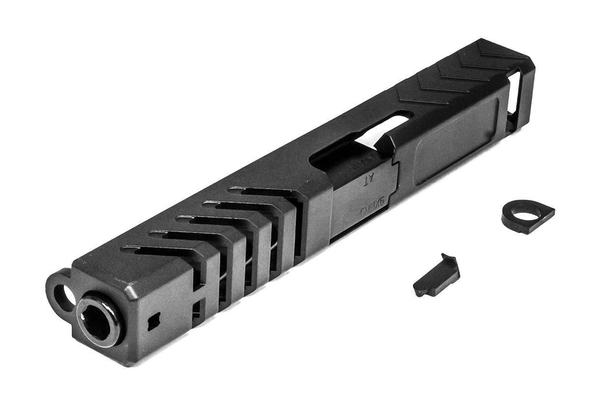 The Atlas Custom Works Type 5 slide and barrel is designed for the Tokyo Marui G17 airsoft gun. The slide has cuts on the side and top of the frame for a unique appearance. Customize your airsoft gun easily with the addition of this slide onto your next build.