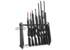 The Beta Project Gun Rack is made from very high quality materials with a lightweight and innovative design. The sides are constructed of polymer and have numerous holes for the custom configuration of the cross beams. The beams are constructed of metal and can be arranged to support many different types of guns based on their characteristics. The entire gun rack assembles in 10 minutes without the need for any tools. There are 10 dividers included with the rack to keep the guns neat and organized. This gun rack is made to sit on the ground.