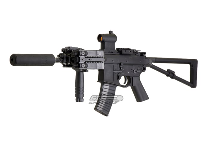 The Bravo / D-Boy RDW (Rapid Deployment Weapon) Airsoft Gun is an excellent CQB option for those what want a different look from the traditional CQB M4. The RDW features a slim down version of the M4 lower receiver, a one piece upper receiver with rails and a folding metal stock. Even the pistol grip and magazines have been slimmed down to save weight. Although the magazines are smaller this gun is compatible with regular M4 magazines. The folding stock allows the user access to small spaces without compromising cover or ability to fire. Other enhancements over a standard M4 include ambidextrous fire selector and magazine release, also this gun features a realistic bolt catch. This is easily the smallest M4 variant available.