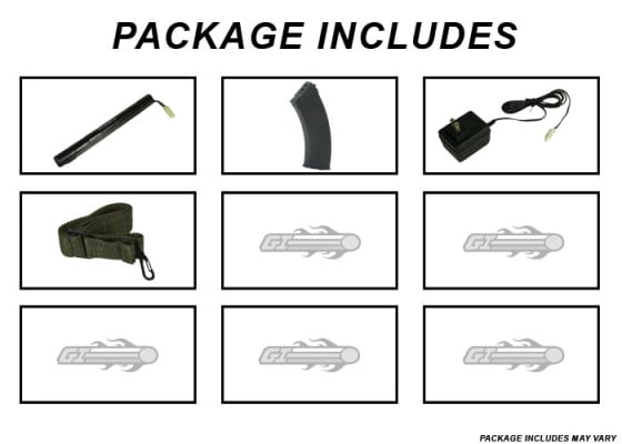Package Includes: Gun, Magazine, Battery, Charger, Sling, Cleaning Rod