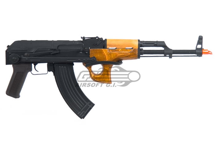 The CYMA CM048SU Full Metal AKMSU is one of the latest additions to Cyma's AK line up of AEG's. The receivers are solid metal and the pistol grip is made of a durable ABS plastic. The handguard is made out of real wood. In addition to the fantastic construction of the body CYMA has added a folding metal stock for CQB environments. The weight combined gives this airsoft gun a realistic feeling that is not too heavy. The internals are the same as the other CYMA AK's so you know it's well made.