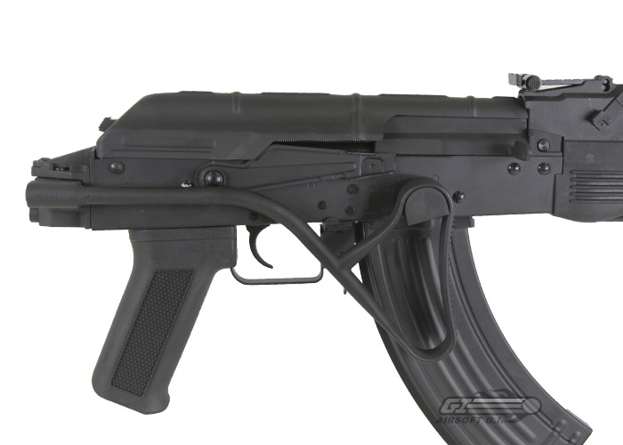 The CM050A comes with an automatic blow back bolt that recoils with every shot. The AK features solid construction with a steel receiver, receiver cover, and barrel assembly. Other reinforced metal parts include the selector lever, bolt handle, trigger guard, and magazine catch. The AK also features a unique steel side folding wire stock design and CNC cut rail mount on the Gas Tube plus rail mount on the lower handguard. It also includes a AKM style muzzle brake, adjustable rear sight, and sling attachment points. The CM050A is an excellent airsoft replica of the famous Romanian designed AK and is sure to be popular among collectors; upgrading a Tokyo Marui with similar features could easily cost twice as much as the CM050.