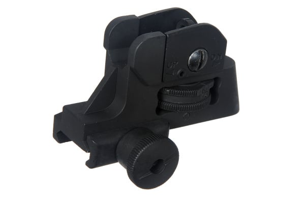 The CYMA M4/M16 CQB Rear Sight attaches to various flat top M16 variant upper receivers. Designed for use with standard Weaver rail systems. The height of sight will line up with standard front sights and/or flip front sights.