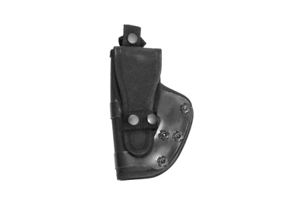 This basic duty pistol can fit most pistols that are similar to the size of railed 1911. The holster fits most pistols tightly so you do not have worry about the weapon falling out. There is a thumb break to help ensure your airsoft gun stays in place until the time you need to draw. Attach the holster with the loop secured onto a belt and you are all set to head into the battle.