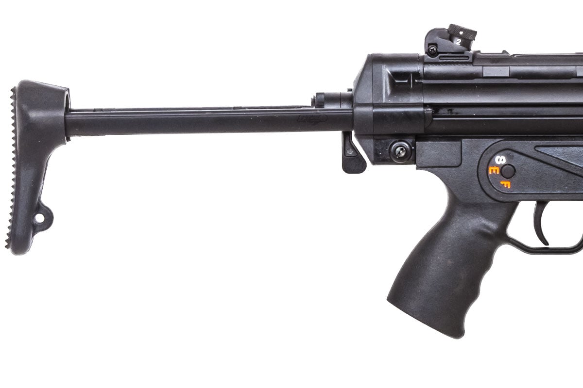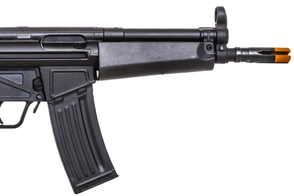The Classic Army CA53 is Classic Army's revival of the CA33 series of rifles that are based on the G3 series of rifles, and feature a smaller caliber round in the real world. This new CA53 features a durable build consisting of metal and polymer, and a heavily updated version 2 gearbox, the CA53 is a solid rifle platform right out of the box. The gearbox set up the CA53 uses is identical to Classic Army's Skirmish line of guns, with beefy internal parts and a zippy motor, along with silver wiring and a MOSFET that is wired in to deans plugs. As standard with all of Classic Army's rifles, the CA53 comes with a 6.03 Tightbore inner barrel and metal inner barrel, which gives the rifle great range right out the box. Externally, the CA53 has a fully metal wire stock and polymer handguard, and lower with an ergonomic pistol grip, with an enlarged selector lever that is used to cycle between safe, semi and full auto. The upper receiver is made of a durable aluminum alloy that has been painted matte black and has space for a railed claw mount for the mounting optics. The magazines the CA53 uses are unique for the CA33/53 platform, and is held with an AK style paddle, as well as an M4 style button on the right side of the receiver. On the stock and handguard are two sling points, one for a fabric sling in the stock, as well as two clip sling points on the handguard and gas block.