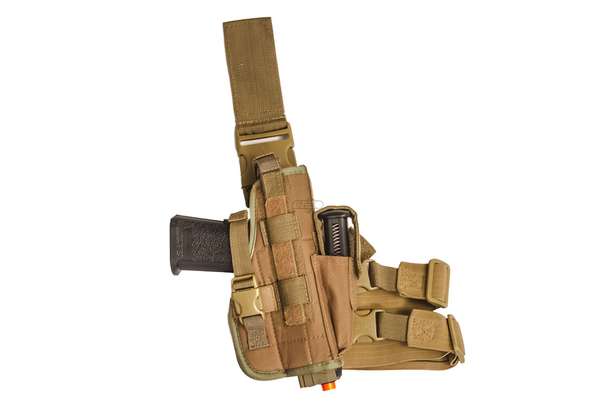 [C15C01][34492 / E043-K]Classic Army Classic II Tactical Holster (Khaki) is designed to accommodate all medium to large size pistols (G17 to Desert Eagle), and is extremely functional. The straps on the holster are specially treated with Non-Slip material. Also, the retention system is extremely easy to doff after use. In order to protect against guns being lost in the heat of battle/on the field, a further optional Velcro safety is added! An extremely function holster.