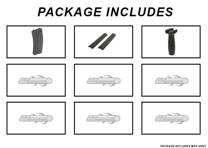 Package Includes: Gun, Manual, 300 Round Magazine, Vertical Grip, Cleaning Rod
