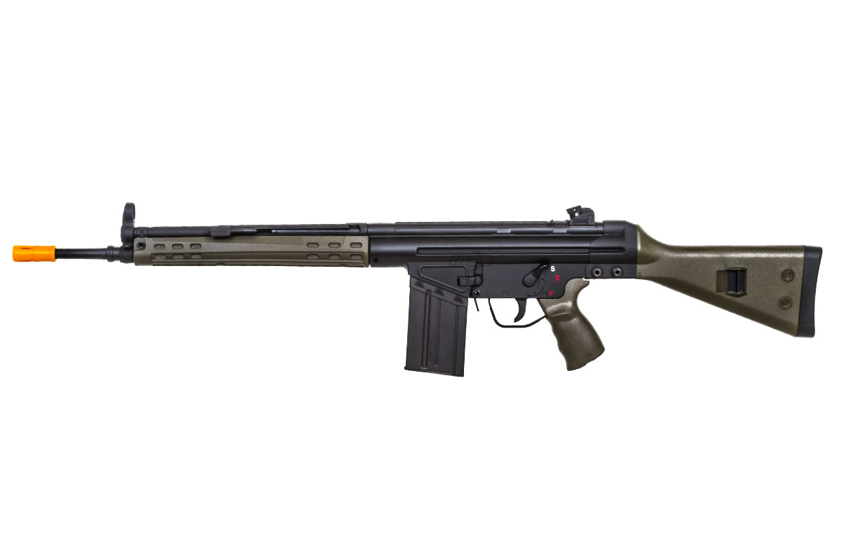 The Classic Army Full Metal G3 A3 Rifle is another great design in Classic Army's series of G3 style airsoft guns. The G3 A3 was made famous with the long service it saw in the German Army and around the world for many years. The G3 A3 Rifle has full metal construction and a laser etched logo with serial number under license with CA. It also replicates the action of the G3; pull back the charging handle and the bolt cover retracts to reveal the hop-up adjustment. The front and rear sling mounts allow the user the addition of a sling. The G3 A3 features an integral folding bi-pod. The long barrel length and the full stock of the G3 make it great at long ranges and extended outdoor games.