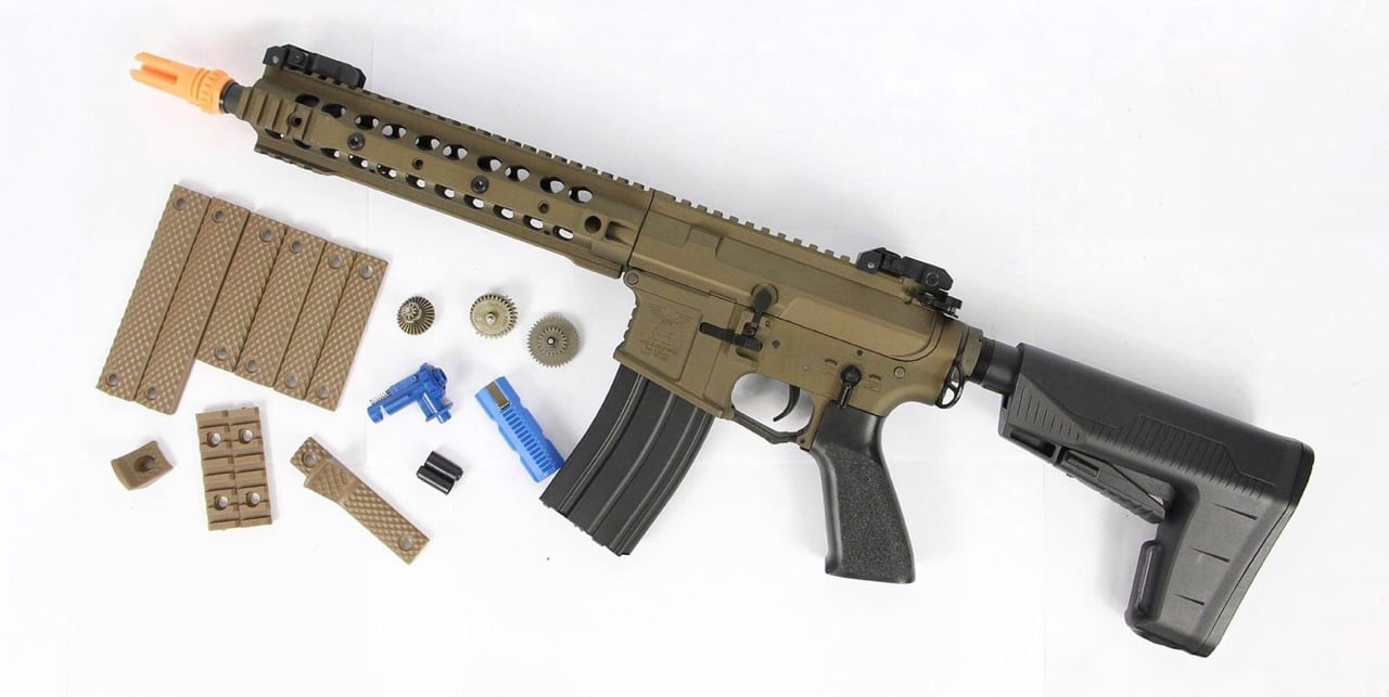 Package Includes: Gun, Magazine, Spare Gear Set, Spare Piston, Spare Hop Up, Spare Buckings, URX Rail Cover Set w/ Hand Stops