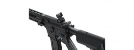 Internally, the gun has a 9mm bushing gearbox, a brand-new electronic control system, inline mosfet protected trigger contacts, 6.01mm tightbore barrel, and a quicker change spring system. Program the electronic control system to shoot at 3 to 5 round burst. Additionally, the ECS has motor protection and low battery detection to help protect the airsoft gun in the long run. It will shoot 330-360 FPS using 0.20g BBs and 900-1000 rpm using a 9.6V battery. Unfortunately, the SBR does not come with a battery and charger. However, most players prefer purchasing a 7.4v or 11.1v lipo and balance charger separately.
