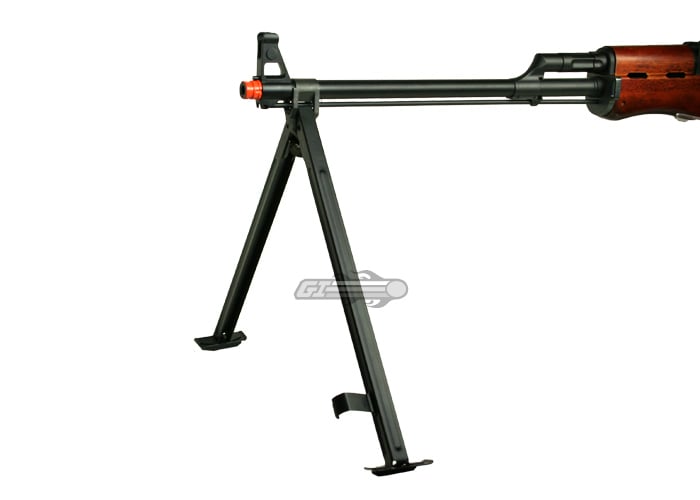 This gun is great. For starters this gun is full metal and real wood. The outer barrel is steel and is quality along with the flip down bipod. All you have to do is unlatch the bipod guard and the spring loaded bipod legs swing down. The wood is very nice and enhances the realism and gives a classy finish to the stock, grip and handguard. There is some low quality pot metal mixed into the top part of the receiver but overall it is very well built. In its stock form it shoots well, I was impressed with the and accuracy. The hop up is poor like on most CAs but the rof is good along with its power and grouping. The battery is housed in the stock which is a funny size so it would be best if you get a custom battery like i did. This gun benefits from having a superior gearbox and many parts being compatible for upgrades. Although this gun is well constructed, CA did not put much effort into the realism in terms of the trade marking. On the real Ruchnoy Pulemyot Kalashnikova it does not say things like "6mm cal" and "made in las vegas" on the body of the rifle. It might be a little pricey compared to the src/tsd rpk but one look at this rifle and your sold. If you are looking for a support gun with a soviet flare or just something awesome in the AK series this is your gun.