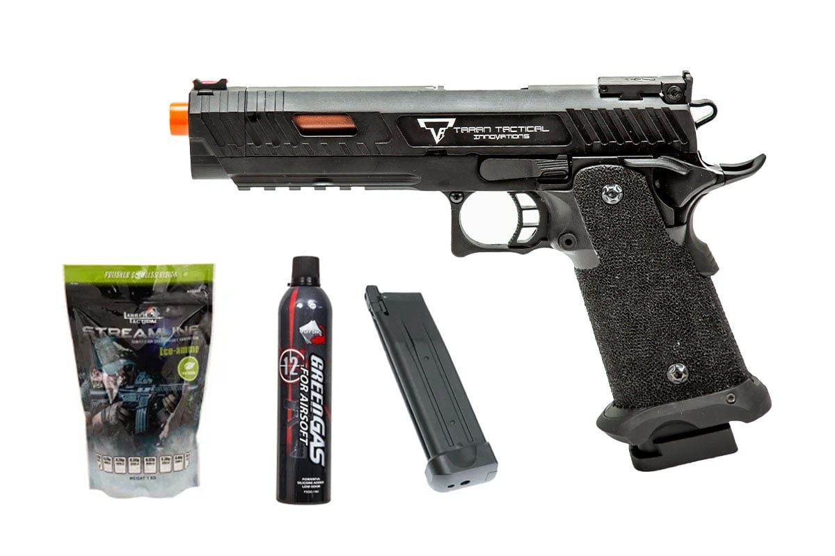 The TTI Combat Master Sight Block GBB Pistol is the latest and greatest GBB Hi-Capa to hit the scene. Innovation and beautiful sylings come together to form this near perfect pistol, However we at GI decided to take things even further by including some extra goodies in these packages. No longer will you have to waste time having to shop around for all the necessary additives, now you can just select one and done. Be it an extra magazine, BB's and Green Gas, or all three, there's a package for you.