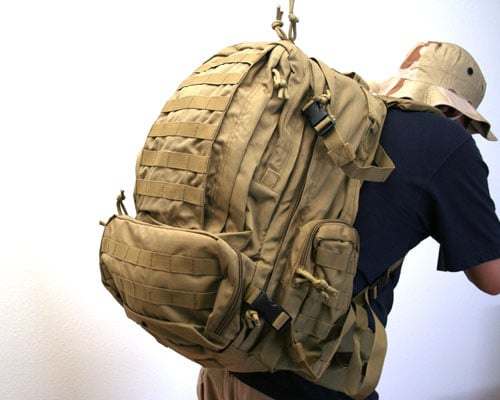The Condor Outdoor 3 Day Assault Pack is covered in MOLLE webbing for all of your tactical needs. The main compartment has a sleeve for the addition of a hydration bladder or internal frame sheet. The two hydration ports are designed to accommodate all mouth pieces on the market; without taking apart the tube to feed it out of the pack. The shoulder straps have been widened to keep the straps away from your neck and on your shoulders where they belong. The Sternum strap is fully adjustable and can be placed in different locations along the length of the shoulder straps. A padded waist strap is included for your comfort and can be removed for use as a MOLLE belt. Adjustable straps on the exterior of the pack insure that the items in the pack are held secure and will not shift. The variety of different sized compartments, from large to small, create a proper place for all your equipment. It is constructed from water resistant 600 Denier Nylon.