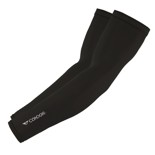 The Condor Outdoor Arm Sleeves are similar to many compression arm sleeves seen being used by athletes of every sport imaginable. Made of a stretchable nylon fabric utilizing slip resistant armbands, the Arm Sleeve provides UV protection, moisture wicking functionality, and can assist with blood circulation to prevent muscle fatigue and help regulate body temperature. The Condor Outdoor Arm Sleeves are available in medium and large sizes, as well as Black, Tan, and Graphite colors. This will allow the end user to retain the same benefits of many popular athletic brands sleeves, while remaining sleek, low profile, and tactical in the field.