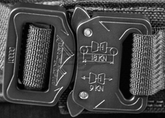 Material: 1" Mil-Spec 17337 Webbing, 1.75" Mil-Spec 27265 Webbing, ABS Stiffener, AustriAlpin 1" Cobra Buckle