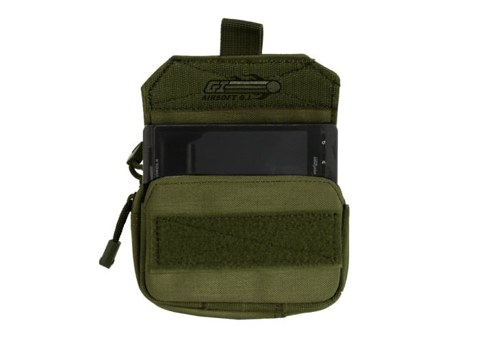 I bought this to hold my valuables on my chest rig when I'm out on the field, so I don't loose them in a pocket or an awkwardly sized pouch. I'm very satisfied with this product. It has a perfectly sized front pocket for my iPhone (4) and the inside fits my wallet and my coin pouch perfectly. It has two tight pockets on each side of the pouch on the inside, so if you have anything small like a key, or a ring, it will keep it snug inside. I highly recommend this to everyone looking for a pouch to store valuables with them on the field, without the fear of loosing them.