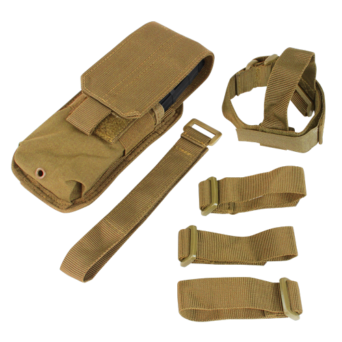 The Condor Outdoor Buttstock Magazine Pouch is designed for both the full stock M16 and the M4 retractable stock. This magazine pouch holds one magazine and secures it with a large Velcro flap. On the back of the pouch are molle loops so the included straps can secure the pouch to the stock. This magazine pouch comes with the harnesses and straps for both the full stock and retractable stock, you may not use all of the straps when secure the pouch to your stock. This is a great pouch to hold an extra magazine for fast reloads or for your 'Last Chance' magazine.