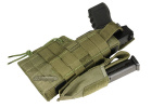 The Condor Outdoor Ambidextrous MOLLE Compatible Holster for Glock mounts directly to vests and plate carriers with standard MOLLE webbing. The holster is ambidextrous and can be mounted for left or right handed users. It includes a secondary elastic cord for securing a pistol grip. The single pistol magazine is removable and additional mag pouches can be mounted on the front of the holster.