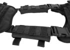 The Condor Outdoor Plate Carrier with Cummerbund has many beneficial features for use in combat and airsoft scenarios. It accepts standardized 10x13 ballistic plates in the front and rear panels that are secured by pull down flaps with heavy duty hook & loop closure. The panels have padded mesh on the inside for comfort and airflow. The shoulder and internal waist straps are adjustable for most sizes (M-XL) and have quick release buckles. In combat quick release buckles give medics quick access to wounds but for airsoft it allows you to just drop your equipment after the game for a deserved break. The cummerbund is adjustable and can carry additional equipment. For added protection the cummerbund has pockets for side armor. Also, for convenience it has a front map pocket, hook & loop panel for ID placard/patches, and a emergency drag strap. Along the cummerbund, the front, and rear panels the Condor Outdoor Plate Carrier is covered in MOLLE webbing.