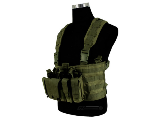 [L01D00][09671 / MCR5-001]The Condor Outdoor Recon Chest Rig is the perfect setup for the high speed player who is looking for a lightweight rig that will hold their magazines and maybe a couple extra pouches but won't get in the way or slow them down during those high-intensity combat situations. This rig features three stacker, kangaroo-style magazine pouches and is designed to carry six m4-type magazines and six pistol magazines. It also features an additional mesh pocket on the inside for maps, papers, etc. The rig also comes with extra MOLLE space for the addition of extra pouches or holsters.