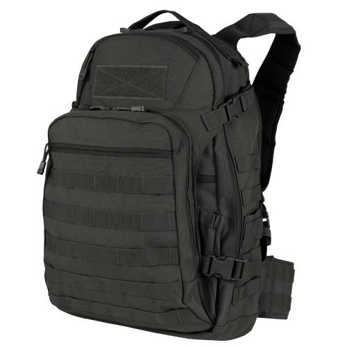 The Condor Outdoor Venture Backpack is covered in MOLLE webbing for all of your tactical and adventurous needs. The main compartment has a sleeve for the addition of a hydration bladder or internal frame sheet. The shoulder straps have been widened to keep the straps away from your neck and on your shoulders where they belong. The Sternum strap is fully adjustable and can be placed in different locations along the length of the shoulder straps. A padded waist strap is included for your comfort and can be removed for use as a MOLLE belt. Adjustable straps on the exterior of the pack insure that the items in the pack are held secure and will not shift. There is a separate pouch on the outside to place your tactical helmet or any loose gear. Hook and loop sections allow the user to attach patches to customize the bag. The variety of different sized compartments, from large to small, create a proper place for all your equipment. It is constructed from water resistant 600 Denier Nylon.Specifications: