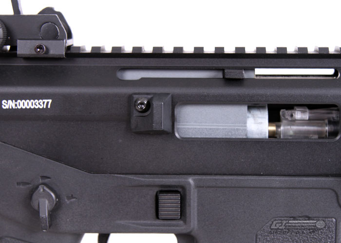 Another thing i really like is the bolt catch. Whenever you pull that thing back and let go it gives you a very satisfying feel. Pulling back the bolt also reveals the clear hop up unit, which has a sliding mechanism instead of the traditional wheel, which works fine. This gun also has a full metal (aluminum) upper reciever, and outer barrel, and a thick, plastic lower reciever, which makes the gun very sturdy. The bolts holding them together are very tight also, ensuring that you won't lose any on the field. Oh, and just to clarify, the gun CAN fit a 9.6v mini in the front hand guard, and i admit, it is a little tricky at first, but u just have to bend the wires right and it'll fit.