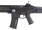 The A&K Full Metal Magpul Masada Airsoft Gun ( Licensed / Black ) is a unique and rare AEG. Airsoft GI is proud be one of the lucky retailers to sell this gun. The A&K Masada is officially licensed by Magpul and carries the Magpul holographic symbol. The upper receiver is constructed of metal and the lower receiver of plastic. The stock extends and folds to the side. The fire selector, magazine release, and bolt release are ambidextrous. The charging handle can be moved to either the left or right side of the gun, and it automatically locks back when pulled. The hand guard is plastic and houses the battery. The barrel is very quickly changeable, with the turn of a lever it can be detached then securely reattached. A&K was gracious enough to provide an aggressive compensator to give the gun a menacing look. Also included is a 300 round high capacity Magpul P-mag. This is an excellent gun for collectors and anyone else looking for an alternative to the MK16.