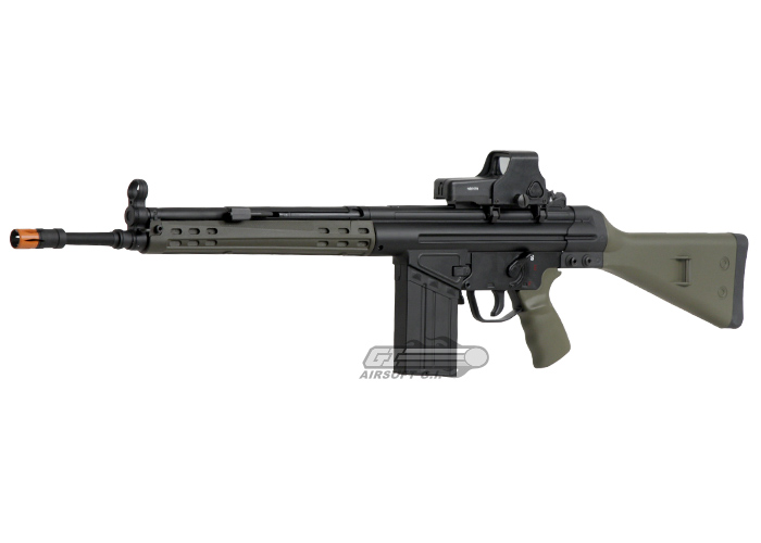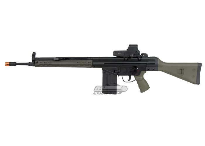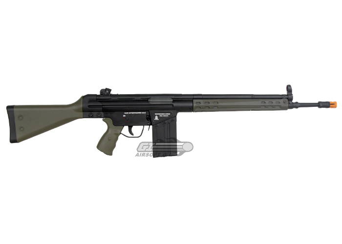 The CA Full Metal SAR Sportmatch M41 SG is one of the latest in Classic Army's series of G3 style airsoft guns. The G3 was made famous with the long service it saw in the German Army and around the world for many years. The G3 is faithfully replicated by the CA SAR Sportmatch M41 SG with its full metal construction and laser etched logo with serial number. The CA also has a realistic action that replicates the functions of the bolt. A Tokyo Marui SG-1 upgraded to match the features of the Classic Army would cost several hundred dollars more.