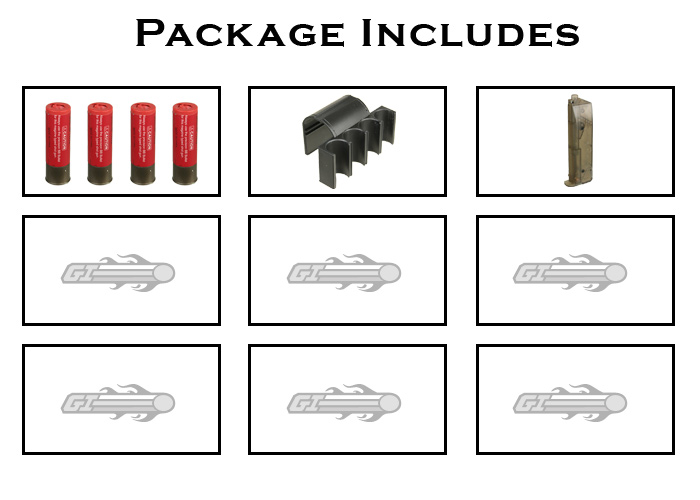 Package Includes: gun, 4 shells, shell holder, and speed loader