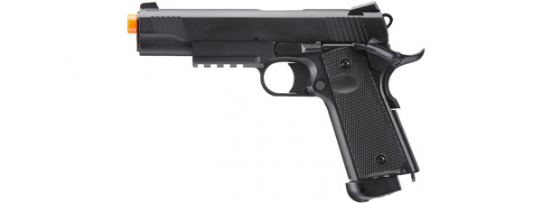 This polymer built 1911 is a lightweight capable side arm for your airsoft needs. CO2 provides crisp blow back and fast FPS around 340-370 making it ideal for target shooting and MILSIM scenario play. The lightweight polymer slide and frame are built to hold-up through the usage of this airsoft pistol throughout its lifespan. Best of all, this cheap priced airsoft gun has a realistic blowback for such an affordable cost! Transport this airsoft gun in the included hard shell case to ensure the goods are protected. Overall, this M1911 airsoft pistol is definitely a piece that all skill levels can add into their collection.