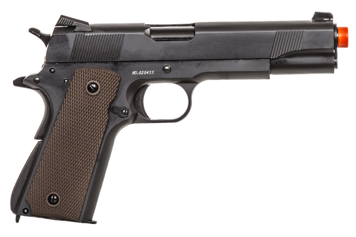 Double Bell M1911 Type 2 GBB Low Velocity Airsoft Pistol (Black/Brown)