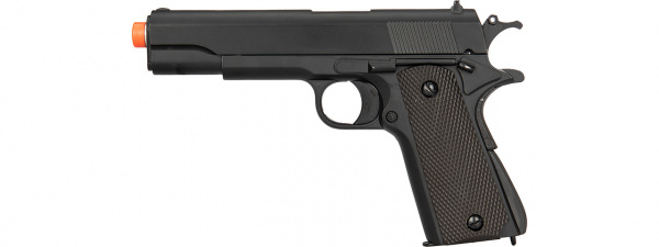 This Double Bell M1911a1 spring pistol is an excellent choice for anyone looking for a budget friendly plinking pistol or a movie prop. It has a realistic size and shape that makes it ideal for a cheap film prop. It can also be used to plink easily to short distances if you would like to try airsoft before committing to a more expensive gun!