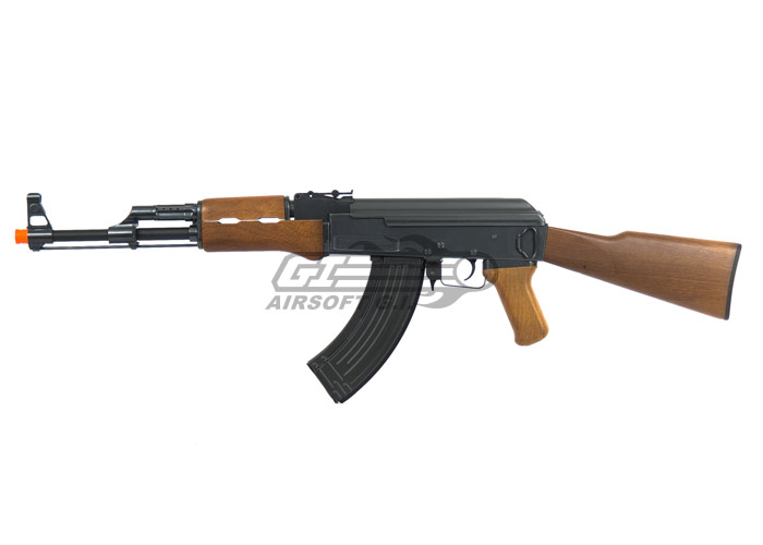 The Double Eagles AK-47 AEG is a good alternative for the new player looking to become accustomed to the airsoft sport. The gun features parts from any standard AK variant out there. The stock, hand guard, pistol grip, and body are made of a polymer material to decrease weight. The gun comes with a magazine, battery, charger, and sling perfect for any player to get out and play. For the price, this Double Eagles AEG is designed for those with a budget in mind.