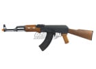 If this is the gun I think it is, my buddy got one at Gander Mtn about a month back. It is disgustingly light, completely inconsistent, and not very powerful at all. Not to mention it has a terrible non-standard NiCd battery that cannot be replaced; or recharged with a smart charger. Again, this thing is in no way powerful, we were completely comfortable being shot with this within 10 feet. It would not penetrate a cardboard box. Just at a glance, the inner barrel looks gigantic. Accuracy is terrible past about 30 feet. Reciever does not open, action/charging handle does not open, orange tip includes front sight post, magazine is non-standard (and is not easily inserted or removed). I also noticed that it shot pretty far to the left after about the first 45 feet. On a high note, nice ROF,furniture looks nice, rather solid construction(no wobble), and the sight is adjustable. Good first gun, backyard/target shooting, basic AK47 acquaintance.