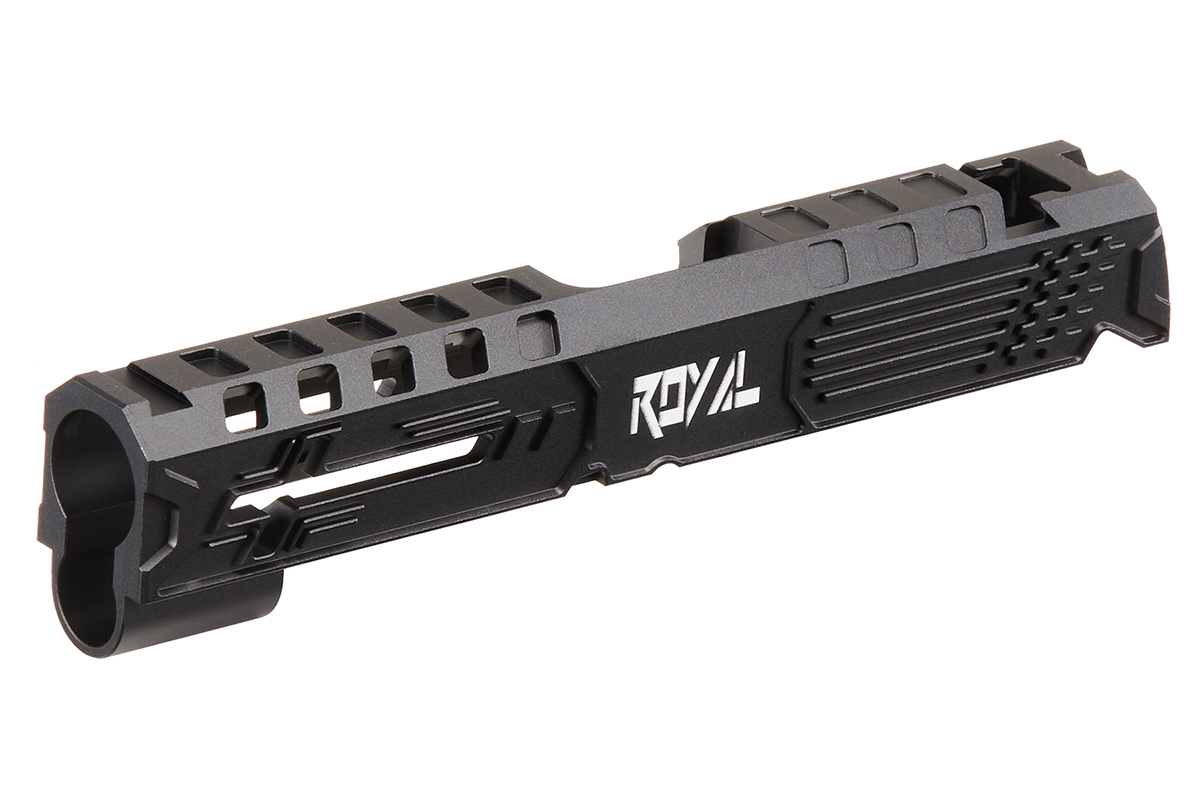 The Dr. Black Royal Aluminum Slide is the ultimate upgrade for Tokyo Marui 4.3 Hi-CAPA GBB pistols, designed for airsoft enthusiasts who demand both style and performance. This premium slide is crafted from high-quality, lightweight aluminum, offering exceptional durability and improved responsiveness. Its precision engineering ensures a perfect fit, while the weight-reducing cut holes give your pistol a sleek, modern look and superior handling on the field.