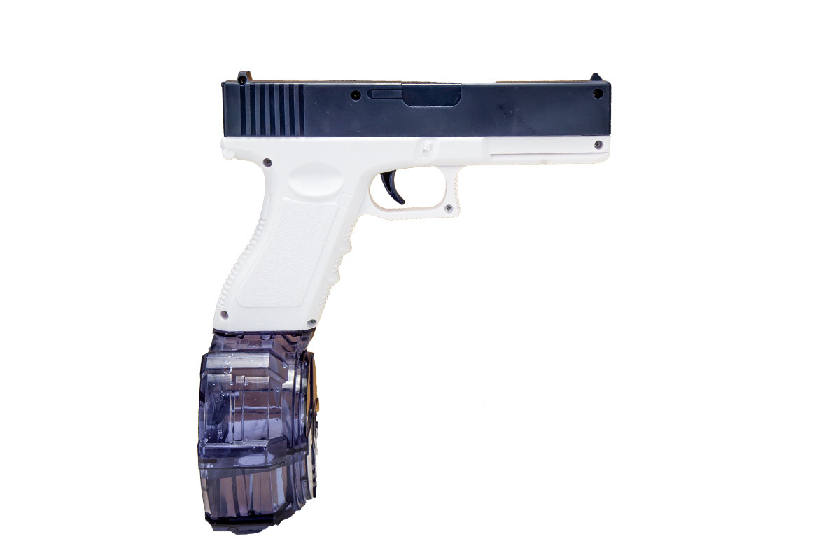The Drip Clock H20 Water Blaster takes water guns to a whole new level! Dominate the neighborhood water fight with this fully automatic electric water gun. The Drip Clock 18 is a magazine fed, electric water gun. Included is the extended drum bucket that holds even more water to keep you spraying for longer! You won't face the embarrassment of running out of water in your water battle!