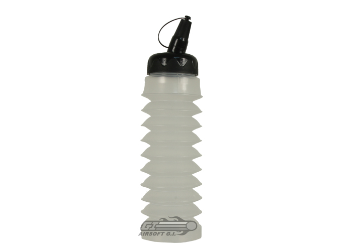 If you've ever wondered how you were going to carry your bb's on the field with you for those long engagements, but did not want to worry about your bag breaking open and losing all of your ammunition, then the ECHO 1 Expandable BB Bottle Container is the perfect option for you. The bottle is constructed of a lightweight, yet durable plastic that starts off at a very compact size, but can be fully expanded to hold a maximum of 2300 extra bb's. The cap to the bottle also features an integrated nozzle with a screw-on cap that allows the player to pour bb's straight into their magazine without worrying about losing any.