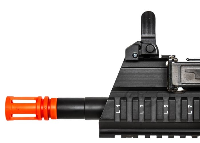 When I first bought the gun on a blitz sale I thought I was getting a pretty good deal and it turns out it was an awesome deal. When I took the gun out of the box I noticed it was a solid chunk of metal. There is absolutely no play on any parts of the gun besides the stock and a little mag wobble. The trades look to actually be engraved into the body and won't come off anytime soon. The exterior finish of the gun is a little rough I must admit it could be better. Also, the iron sights that come with this gun are a joke. But the included battery and midcaps fed and worked flawlessly though I would highly recommend switching it to deans adding a mosfet and running a 11.1v lipo. As I took the gun completely apart the inside of the gearbox seemed to have a tad to much grease but nothing major. Stock shimming could be a little better but it was decent for a stock gun. The hop up unit easily came apart and it was a breeze to install a different bucking and nub. The hop up can only be adjusted once the mag is removed from the top but once it is dialed in it absolutely will not move as it is quite stiff. The selector switch also moves freely and clicks into place nicely. The fake bolt on the side of the gun does wobble a little bit and if it gets loose it can be tightened down. I was able to rewire the gun to the mag well and use a large hollowed out m4 mag to store a large battery. When you insert a standard m4 mag there is a tremendous amount of play and wobble. This can be easily fixed buy apply soft Velcro to either the mag or the inside of the mag well to eliminate mag wobble completely. If you hollowed out a fat mag you could store a very large lipo battery.