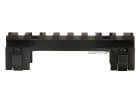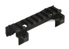 This does not mount onto a rail system, this is designed to mount onto the MP5 platform to give a mount for optics. 4322 days ago 0