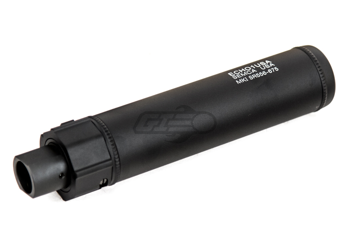 The Echo1 Mk1 SR556 7.5" Quick Detach Barrel Extension is a high quality barrel accessory from Echo 1 that is made from a high quality t6 aluminum, adding to the authenticity and feel of a real firearm. The Barrel Extension incorporates a QD feature into its design that can attached to the included flash hider that must be accompanied to use the extension. With the included flash hider attached to your rifle, the mock suppressor can be attached by simply placing the extension on the comp and securely seating it. The extension can be taken off by simply reversing the procedure, making this attachment extremely versatile for those who wish to change the look and feel of their firearms in a snap!