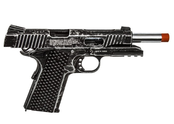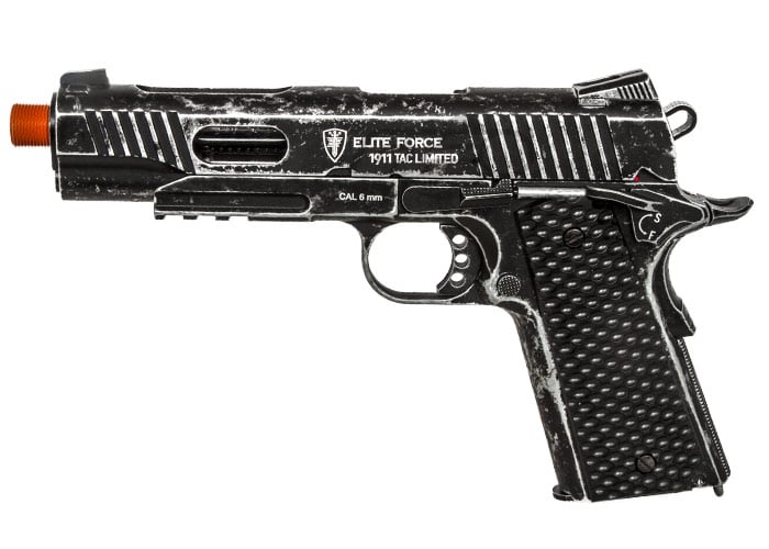 Additionally, Elite Force has customized the airsoft gun with a weathered appearance and slide ports for decreasing cycle time and increasing the cycle rate. The Elite Force Full Metal 1911 is definitely a show stopper, and at this price is affordable for most budgets making this gun a definite hit.