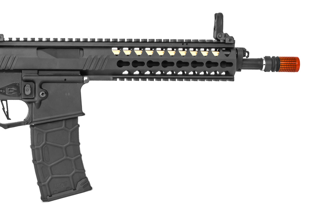 The Avalon Series is the latest generation of next level AEGs from VegaForceCompany (VFC) meant to allow the shooter to compete at the absolute highest level. Numerous enhancements have gone into the Avalon series AEGs that puts them in a league of their own. Notable improvements inside and out include an Elite Force flat-faced blade trigger, super high-torque motor for faster trigger response and cycle rate, quick-change spring for upgrading or downgrading the velocity to comply with field limits, VFC QRS enhanced textured pistol grip, VFC QRS trigger finger rest (a first in the industry), Avalon custom gearbox, CNC aluminum handguard, and a 120-round updated QRS mid-cap magazine. The Avalon Gladius features a 10" Keymod handguard, compatible with industry standard Keymod accessories. Trigger response and cycle rate are sure to impress even the most discerning airsoft players. If you demand high performance with a sleek exterior, we welcome you to explore the VFC Avalon series AEGs.