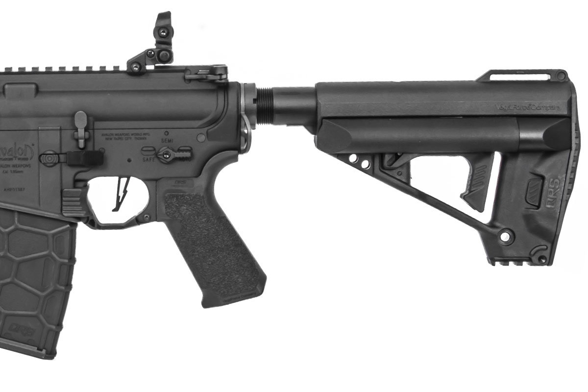The Avalon Series is the latest generation of next level AEGs from VegaForceCompany (VFC) meant to allow the shooter to compete at the absolute highest level. Numerous enhancements have gone into the Avalon series AEGs that puts them in a league of their own. Notable improvements inside and out include an Elite Force flat-faced blade trigger, super high-torque motor for faster trigger response and cycle rate, quick-change spring for upgrading or downgrading the velocity to comply with field limits, VFC QRS enhanced modular stock and textured pistol grip, VFC QRS trigger finger rest (a first in the industry), Avalon custom gearbox, CNC aluminum handguard, and a 120-round updated QRS mid-cap magazine. The VR16 Saber Carbine features a 13" M-LOK handguard, compatible with industry standard M-LOK accessories. Trigger response and cycle rate are sure to impress even the most discerning airsoft players. If you demand high performance with a sleek exterior, we welcome you to explore the VFC Avalon series AEGs.